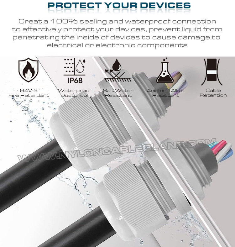 [STRONGLY WATERSTATTY]Nasze przewody spełniają normy wodoodporności IP68 / IP69K, co oznacza, że mogą wytrzymać zanurzenie w wodzie o metr głębiej.uszczelnienie i orzech uszczelniającyW porównaniu z normalną zjednoczoną strukturą gruczołu kablowego, nasza wersja jest dostarczana z dodatkowym pojedynczym kawałkiem o-kręgu, który generuje ściślejszy wiązek na kablach, lepiej chroniąc urządzenia elektryczne.