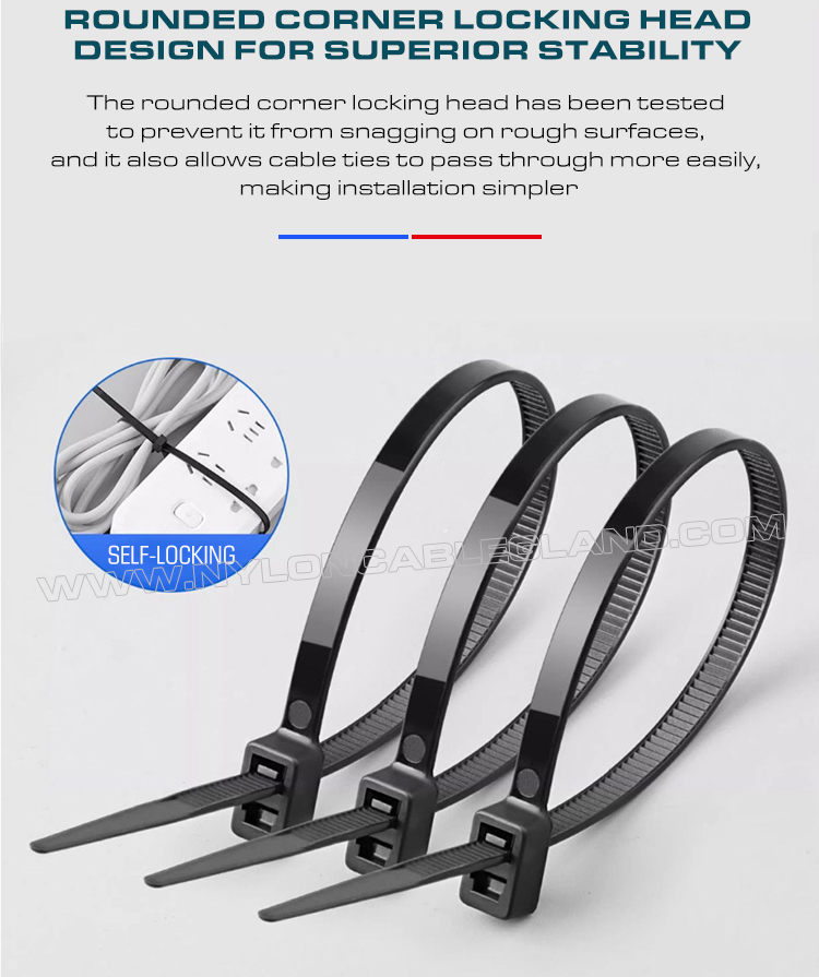 (2) Wytrzymałość: wytrzymałość na rozciąganie jest określona przez szerokość 4,8 mm, wytrzymałość na rozciąganie 50 funtów, dzięki czemu te opaski kablowe są mocniejsze niż standardowe opaski i nadają się do większej liczby projektów.