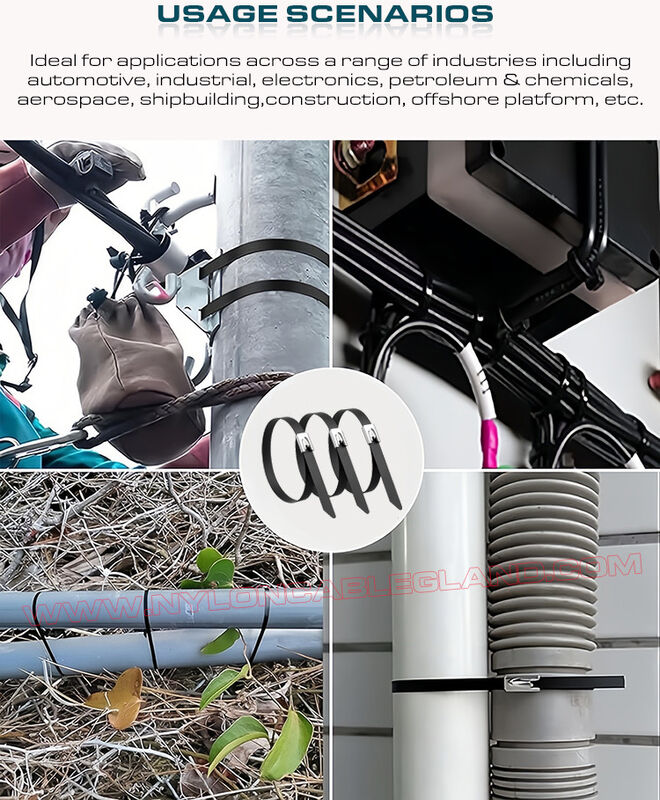 | Stosowanie: | Zabezpiecz i uporządkuj kable, przewody, rury, rośliny itp | Aplikacja: | Szeroko stosowany w różnych trudnych warunkach |