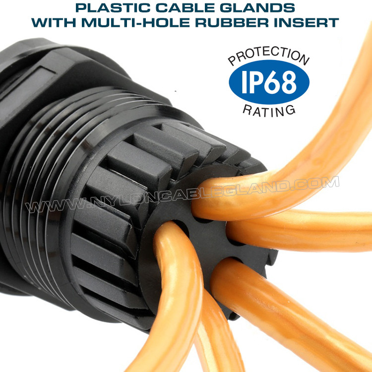 Nylonowe dławiki kablowe z wkładką wielootworową dla wielu kabli przez ten sam otwór i idealne do systemu mocowania, wielootworowe (wielowejściowe) plastikowe dławiki kablowe IP68 z gwintem PG lub metrycznym do obudów elektrycznych zostały zaprojektowane w celu ochrony urządzeń elektrycznych, które umieszczone w obudowach. Wyposażony jest w wielootworową wkładkę odciążającą dla każdego urządzenia, umożliwiającą przeprowadzenie przez kilka przewodów w celu podłączenia do portów różnych urządzeń elektrycznych. Wodoodporny dławik kablowy IP68 w połączeniu z wodoodpornymi wtyczkami zapewnia niezawodną ochronę przed wodą i kurzem, umożliwiając Twojemu urządzeniu elektrycznemu uzyskanie wysoce pełnej ochrony, szczególnie gdy nie ma potrzeby konfigurowania urządzeń przez dłuższy czas po ich zainstalowaniu w obudowach. Jeden łatwy i szybki montaż na porcie pomaga zmniejszyć ryzyko wymiany urządzenia z powodu problemów takich jak przesiąkanie wody.